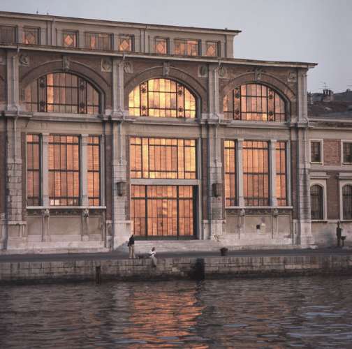 Riproduzione fotografica della facciata di un edificio all'interno della Risiera di San Sabba
