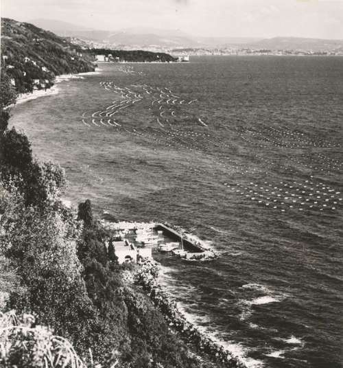 Porticciolo di Santa Croce e Filtri visti dall'alto e sullo sfondo Miramare e Trieste
