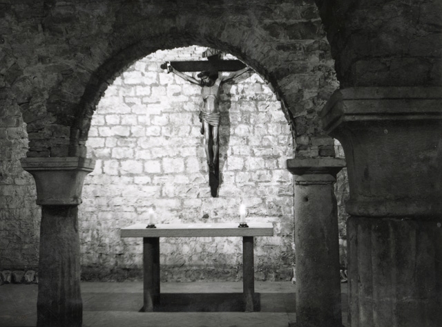 Altare con crocifisso ligneo