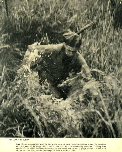 BURMA. BRITISH TROOPS PUSH ON THROUGH THE MUD