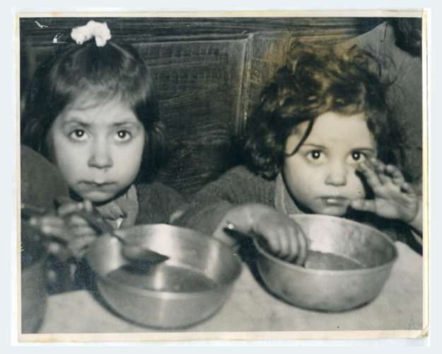 Bambino che mangia all'istituto figli del popolo a Napoli