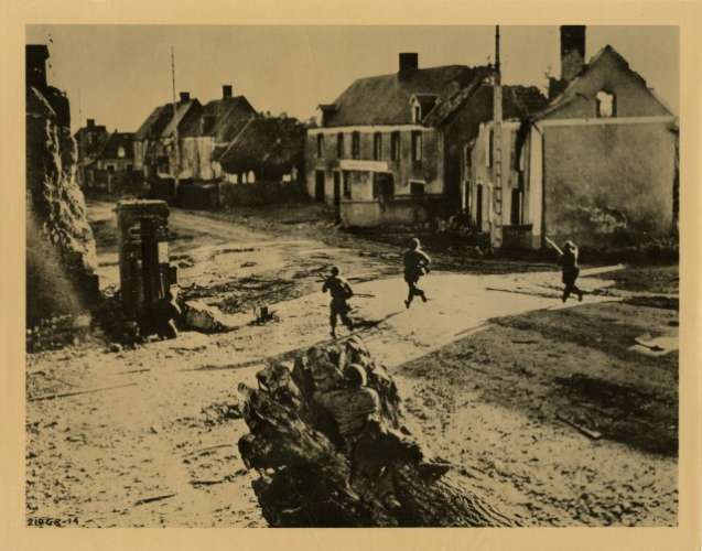 Fanteria alleata sotto il fuoco nemico nei pressi di Periers