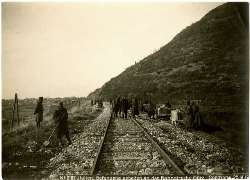 N. 2187 Jtalien. Gefangene arbeiten an der Bahnstrecke Görz-Cormons : 28.11.17 = Prigionieri italiani lavorano al tratto ferroviario Gorizia-Cormons : 28 novembre 1917