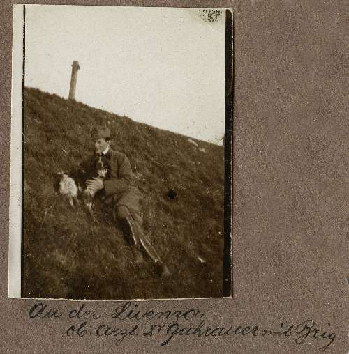 RegtsKomando GSchR1 1. Sept. 1917 in Res. (Mandria) : Hptm Gerstmann mit Dolly Oblt. Hörster-Steffleur Obstls Buscbaum