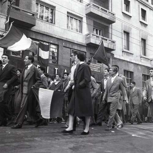 Manifestazione indipendenza piazza Garibaldi e contro dimostranti e devastazione ufficio attiguo Fronte dell'Indipendenza