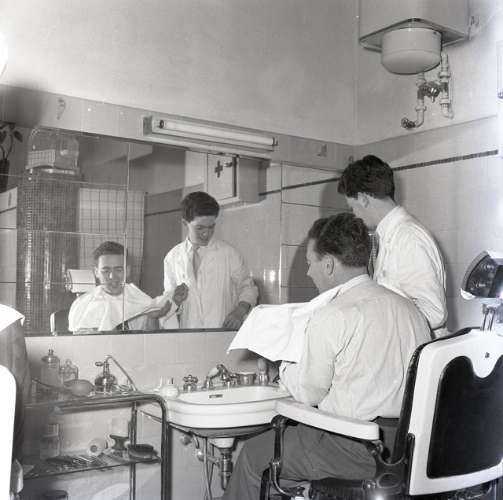 Kaiser Frazer (auto USA) : insegne luminose, dalla terrazza Hotel Milano