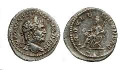 Denario con testa di Caracalla / Personificazione dell'Indulgenza feconda