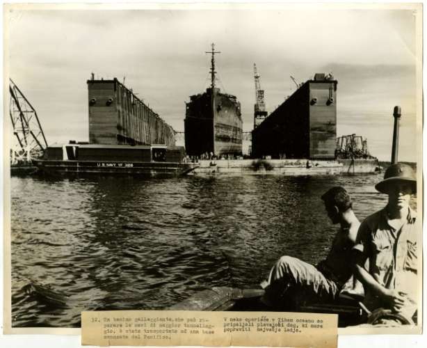 U.S. navy wins supply battle of the Pacific : A Floating Drydock in Operation at an Advance Pacific Base
