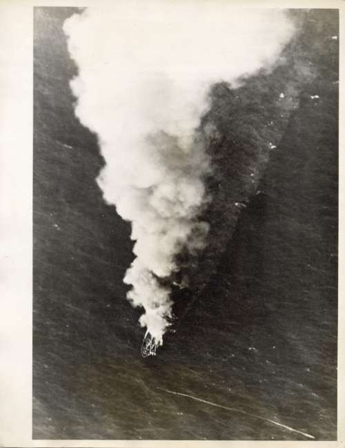 Japanese ship sinking after U.S. air attack in south China sea
