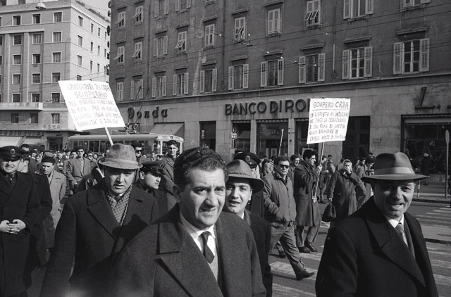 Santa Croce : Casa del Popolo, scritte pro bilinguismo. Costruzione strada stazione ferroviaria Miramare