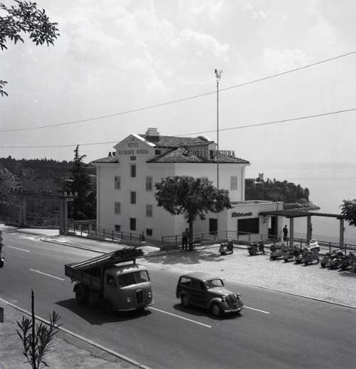 Ministro Tupini inaugura uffici informazioni a Pese, strada per Grotta Gigante, scalinata Canovella de'Zoppoli, albergo Riviera, nuova ala Ostello Tergeste