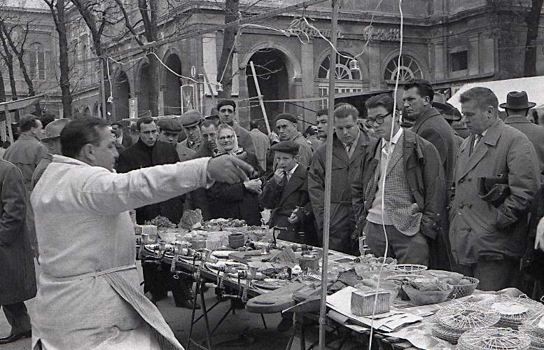 Bagnanti in scogliera; vedute di S. Giusto e fotografo; cassettista; turisti (anche sulle rive)