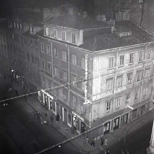 Kaiser Frazer (auto USA) : insegne luminose, dalla terrazza Hotel Milano