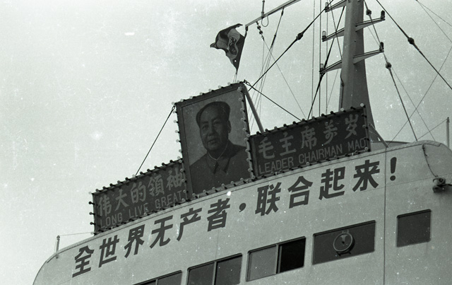 Nave cinese con ideogrammi e ritratto Mao Tse Tung