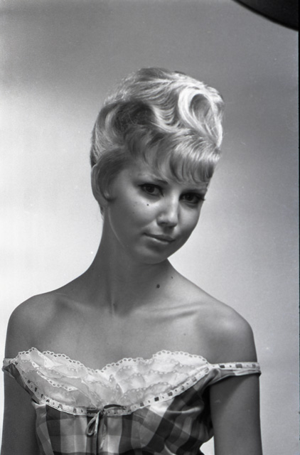 acconciature in studio (? – modella Marisa) anche Ugo Borsatti al lavoro