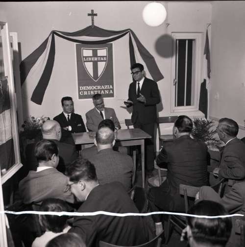 Incontro prof. Premoli (PLI) con dirigenti partito e comizio p.zza Goldoni