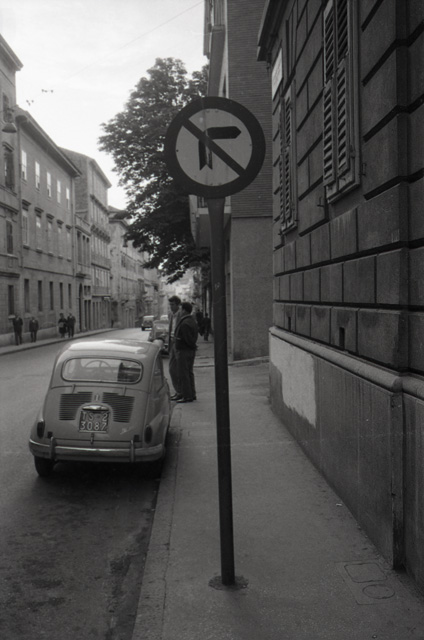 v. Gatteri / segnale divieto svolta a ds. / simboli MSI - PLI - Monarchici