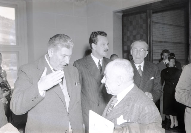 Elena Nicolai, Franco Corelli, Maria Meneghini Callas e Antonino Votto sul palcoscenico del Teatro Verdi di Trieste in Norma, novembre 1953