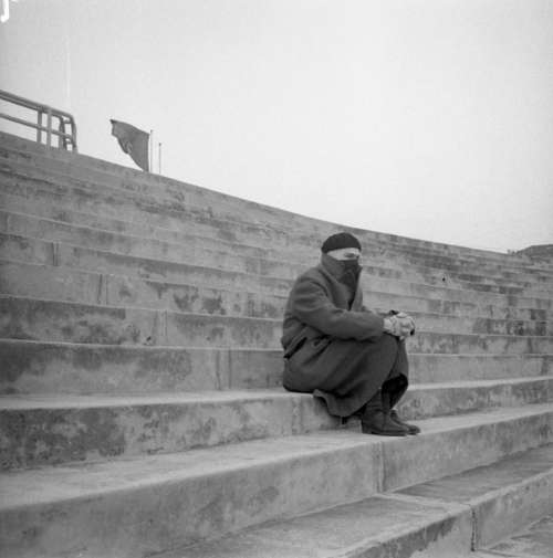 FREDDO : cani vestiti ; bambini imbacuccati ; auto balilla - antigelo ; semafori gente in attesa