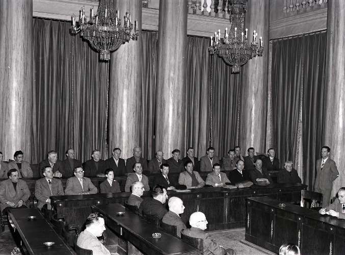 IL RICEVIMENTO IN MUNICIPIO DEL VICE AMMIRAGLIO JOHN CASSIDY ; GIORNALFOTO : SERIE 1251 : 8 giugno 1953