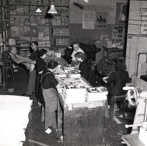 Gruppo studenti a Sant'Antonio Nuovo. Signora Genova nel suo negozio Giornalfoto e dipendenti