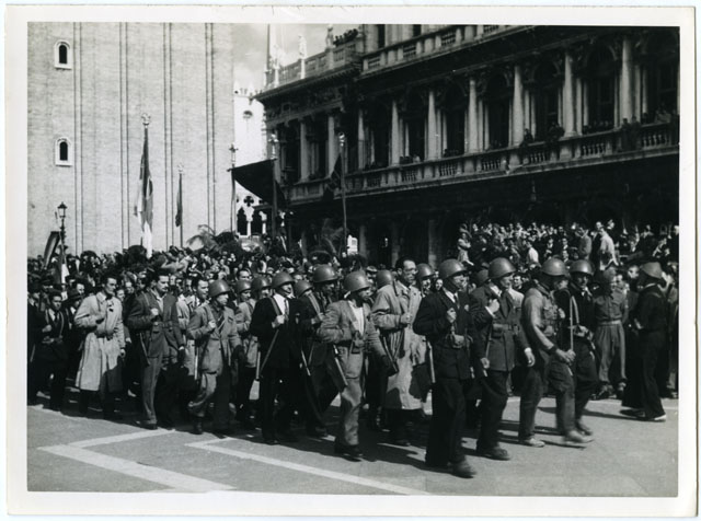 Cerimonia partigiani in Piazza S. Marco, di fronte alle autorità angloamericane