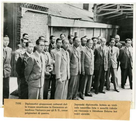Japanese Admiral Teijiro Toyoda (left), Minister of Munitions, former foreign Minister and President of the Japan Iron Works, and Shigenori Togo, foreign Minister and Minister of Greater East