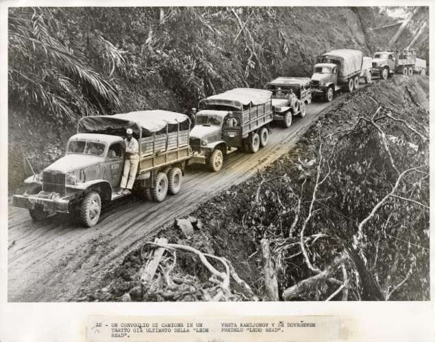 U.S. Army trucks are loaded with supplies just flown into China from India