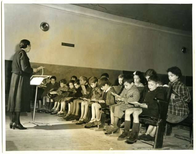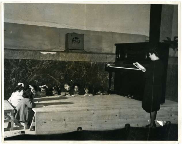 STUDENTS OF THE THIRD GRADE GET A FRONT ROW OUTLOOK ON THE DOUCATION OF LIBERATED ITALY IN THE SEATS OF THE LITTLE THEATER OF FOGGIA.