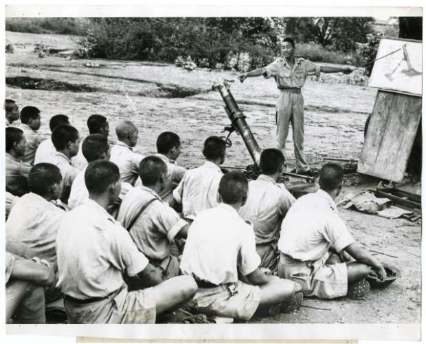Chinese instructor explains the use of the mortar to a chinese mortar unit