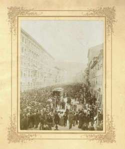Corsia Stadion: passeggiata dimostrativa del 1 maggio 1902 organizzata dal Partito Socialista [via Cesare Battisti]