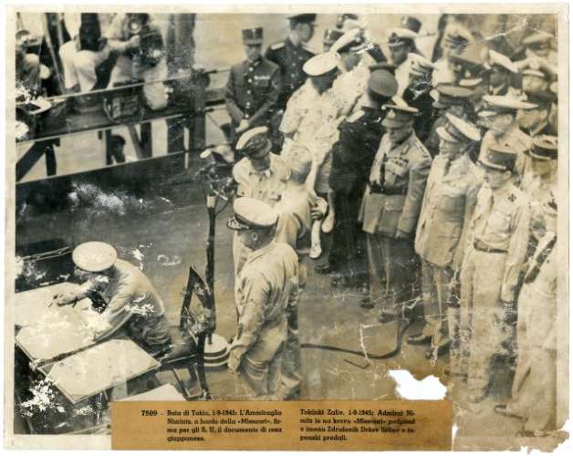 U. S. Fleet Admiral Numitz signs japanese surrender document for U. S.