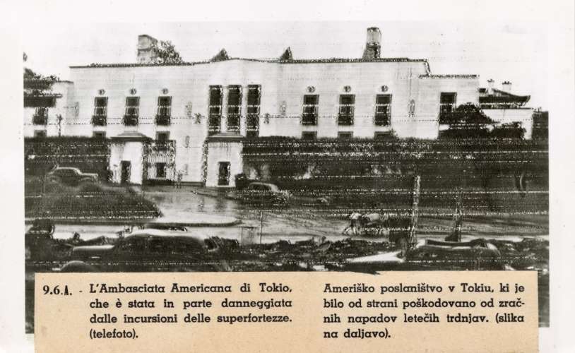 United States Embassy at Tokyo shows signs of partial damage from U.S. Superfortress raids on Japanese Capital
