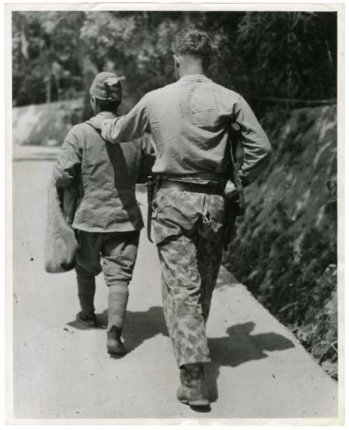 U.S. Marine takes Japanese prisoner