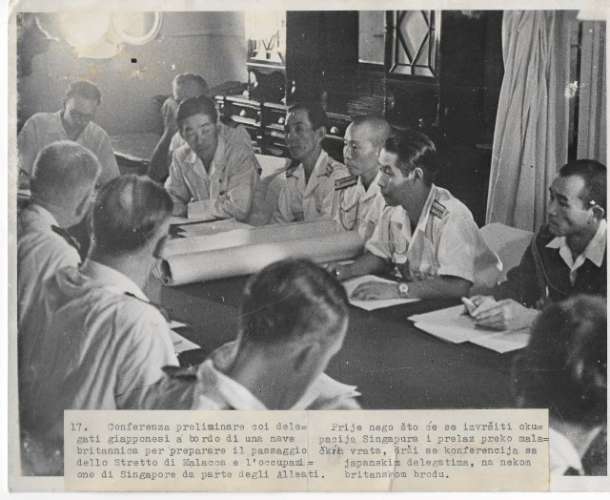 Conferenza preliminare con i delegati giapponesi per il passaggio di Malacca e Singapore agli alleati