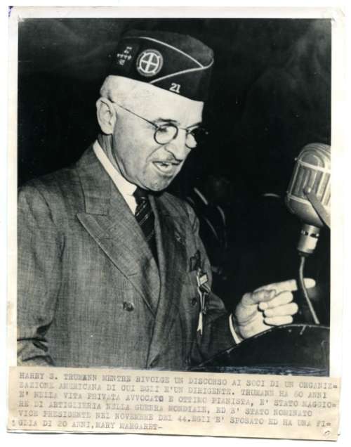 Harry S. Truman mentre rivolge un discorso ai soci di un'organizzazione americana