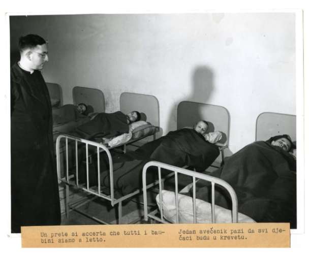 Prete controlla il dormitorio dell'istituto figli del popolo a Napoli