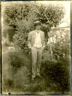 Riccardo Pitteri in piedi nel giardino della sua villa
