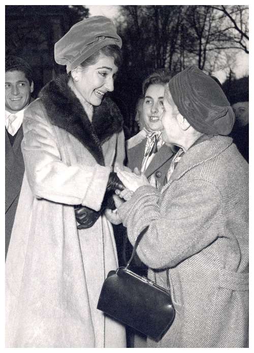 Maria Meneghini Callas, Cinico Angelini e Giovanni Ermete Gaeta alla Serata della Canzone al Palazzo dello Sport, Milano 1957