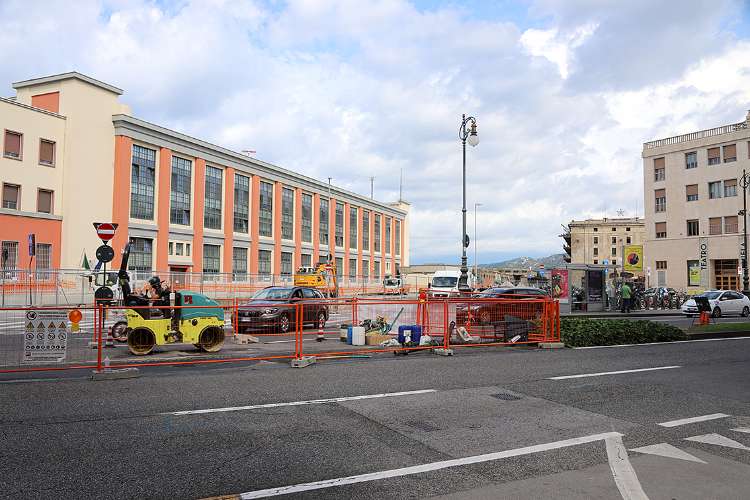 Demolizione dello spartitraffico in Riva Tre Novembre