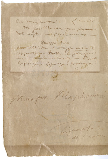 Autografo di Giuseppe Verdi al maestro Mascheroni