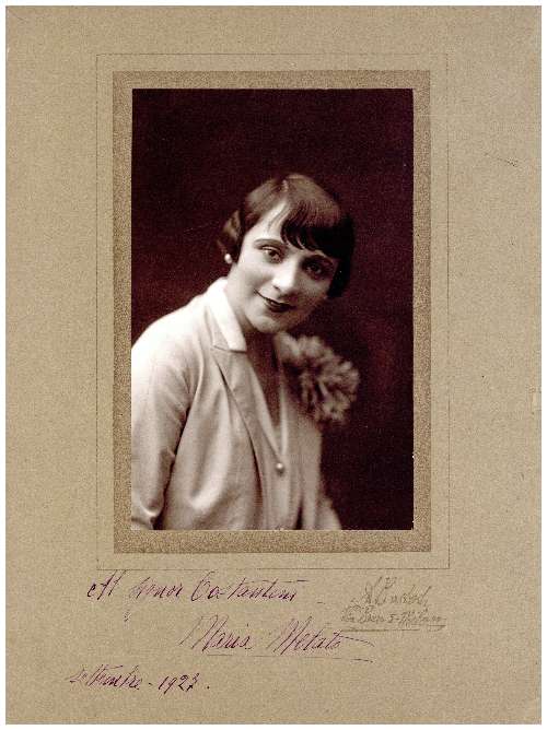 I Giacobini, dramma di Federico Zardi. Figura femminile di profilo in abiti della Rivoluzione francese