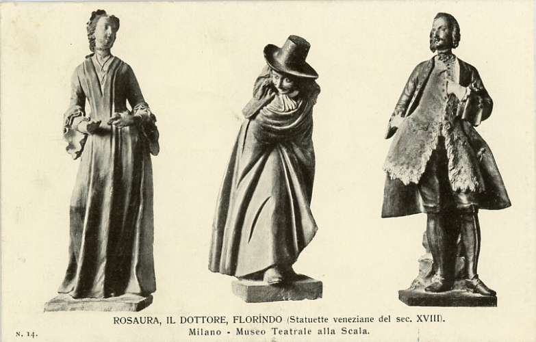 Rosaura, il Dottore, Florindo (Statuette veneziane del sec.XVIII). Milano - Museo Teatrale alla Scala