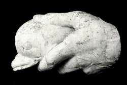 Stele con due mani alzate e la legenda greca osios kai dicaios da parte di Lucifera in marmo