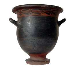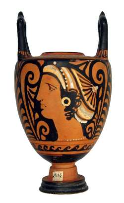 Cratere a calice con testa femminile a vernice nera sovraddipinta