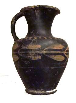 Epichysis apulo in terracotta a figure rosse da Rudiae. Lato A: testa femminile con stephanè