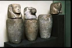 Coperchio a testa di falco pertinente a uno pseudo-canopo in calcare, dall'Egitto