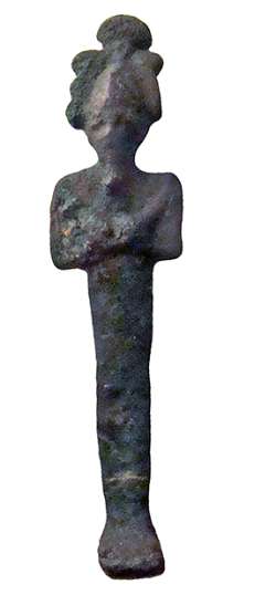 Amuleto raffigurante Osiride con anello sulla schiena, alla caviglia destra, dall'Egitto
