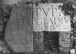Epitafio in memoria di Publio Clodio Quirinale con figura di nave in calcare da Trieste piazza Oberdan