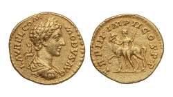 Denario con testa di Lucio Vero / Personificazione della Vittoria